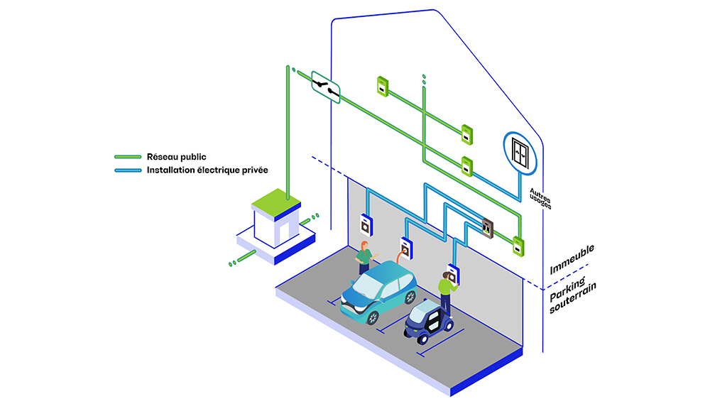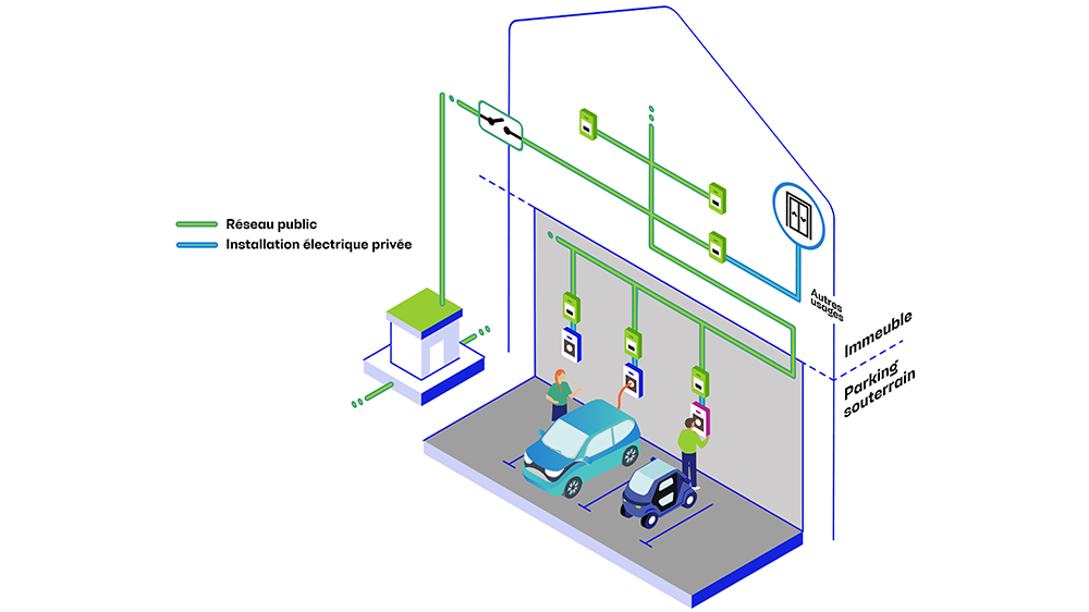 En copropriété, lors de la première assemblée générale, les résidents feront le choix de l’opérateur qui déploiera l’infrastructure collective de recharge à partir du point de livraison déjà installé.